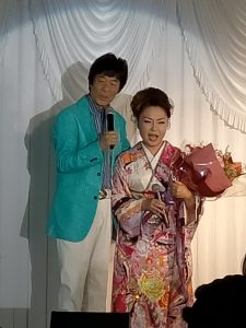会場には、桜ちかこが歌うヒット曲の作詞家海老原氏も応援に駆けつけ同氏が登場と司会者から告げられると会場どよめき、われんばかりの拍手。海老原氏が作詞した歌詞のエピソードが紹介されると皆は「う~~ん」と一連の歌詞内容にうなずいた。